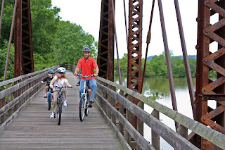 A surprised awaited us. This path opens up from a canopy of trees to a trestle bridge and then on to small bridges that cross little creeks.